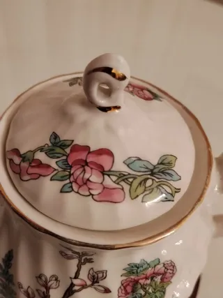 Preciosa lechera de porcelana Sadler, con un diseño floral muy característico. - Fabricada en Inglaterra. - Decoración floral detallada. - Acabado blanco con detalles dorados. - Altura total 14 cm.