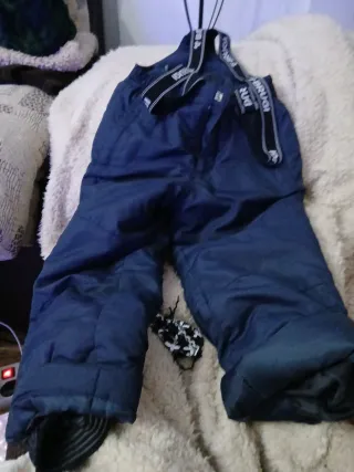 Pantalón de nieve azul marino con tirantes ajustables. Ideal para actividades al aire libre en climas fríos. - Tirantes con logo. - Tejido resistente.