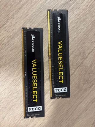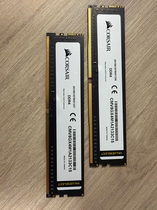 2 Módulos de memoria RAM Corsair en perfecto estado. - Capacidad total: 16GB (2 x 8GB) - Tipo de memoria: DDR4 - Velocidad: 2133MHz - Modelo: CMV8GX4M1A2133C15 No se admiten cambios ni rebajas