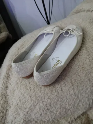 Elegantes bailarinas con un diseño brillante y detalles de lazo. - Acabado metalizado. - Puntera y empeine con microperforaciones. - Pequeño lazo decorativo en la puntera. - Interior con logo de la marca.n 32