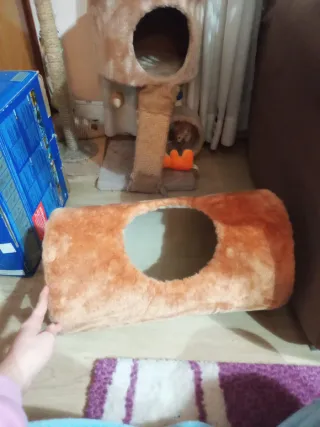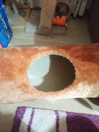 Divertido túnel para gatos en color naranja. Ideal para que jueguen y exploren. - Apertura central. - Material suave al tacto.