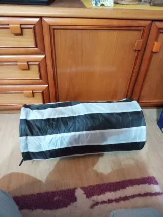 Divertido túnel para gatos con un diseño de rayas blancas y negras. Proporciona un espacio para jugar y esconderse. - Diseño de rayas verticales. - Material de poliéster.