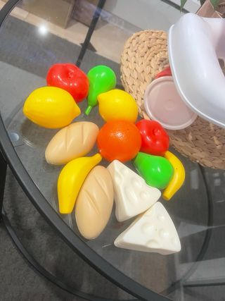 Carrito de supermercado de juguete. Incluye varios accesorios de comida. No tengo la caja original. - Mide 53cm de alto - Accesorios de comida de plástico: frutas, pan y queso.