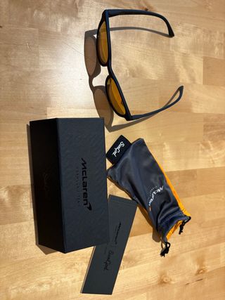 Vendo gafas de sol SunGod x McLaren F1 Team modelo Sierra. ✔️ Nuevas, sin uso ✔️ Edición oficial McLaren F1 ✔️ Lente espejo naranja 8KO® ✔️ Montura negra mate ✔️ Con caja y funda original