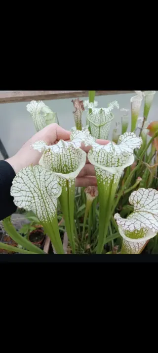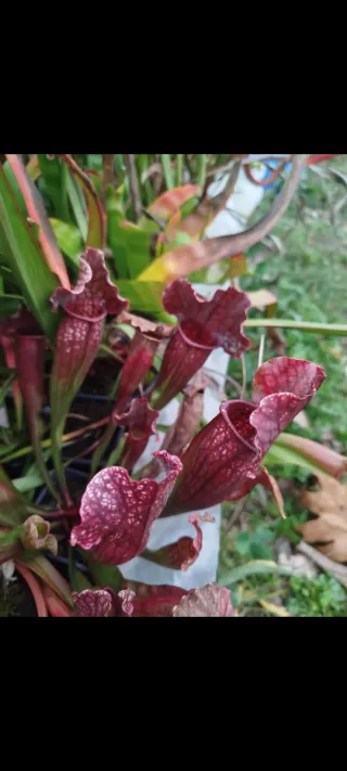 Se venden plantas de tamaño mediano, descendientes del cruce de sarracenia purpurea x leucophylla. Todas son plantas de semilla, por lo que cada ejemplar es genéticamente diferente.