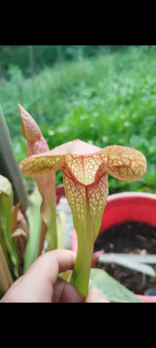 Se trata de una Sarracenia (Scarlet Belle X Bella) X (Scarlet Belle' X Lynda Butt) Division tamaño M
