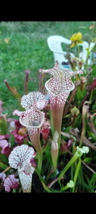 Se venden divisiones adultas de Sarracenia leucophylla. Clon de la planta mostrada en las imágenes. - Planta de exterior. - Atractivo diseño de jarra.