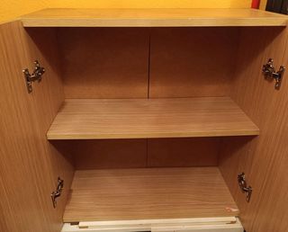 Pequeña estantería de madera con varias baldas. También apta como mesita auxiliar.