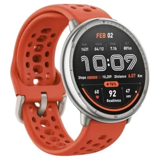 Reloj inteligente Amazfit Active 2 Pro con correa de silicona perforada. - Color de la correa: naranja. - Color de la caja: plateado. - Pantalla circular con información de actividad. Comprado hace un mes. Está nuevo.