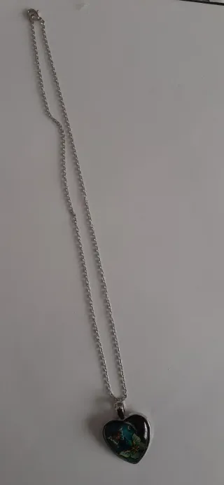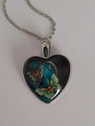 Bonito colgante con forma de corazón y un diseño de mariposas. - Colgante con cadena. - Diseño de mariposas en tonos azules y verdes.