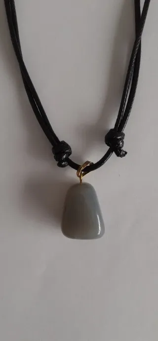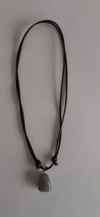Colgante con una piedra de calcedonia gris. - Piedra de calcedonia pulida. - Cordón negro ajustable.