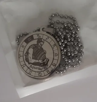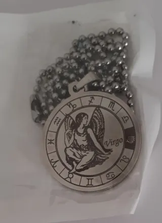 Colgante con diseño del signo zodiacal Virgo, Géminis, Piscis y Aquarius. - Diseño detallado de Virgo con el símbolo zodiacal. - Cadena de cuentas de plata.