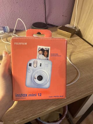 camara instantanea intax mini 12 azul pastel con carrete puesto con dos o tres fotos comprada en junio usada dos o tres veces comprada en mediamarkt con dos años de garantia desde junio ( por tanto ahora le quedan 1 año y 5 meses de garantia) seguro de un año me parece aun tengo factura y papeles en su caja original en perfecto estado y con su accesorio original en su caja incluido con pilas con poco uso instaladas y entrego con un par extra nuevo de pilas.