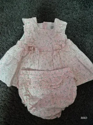 Precioso conjunto marca Coconut de dos piezas para bebé niña para verano, ideal para cualquier ocasión. Talla 18-24 meses - Braguita a juego con volantes. - Diseño delicado y cómodo. Vestido con braguita rosa 12 meses. Los 2 conjuntos 7€ cada uno 5€