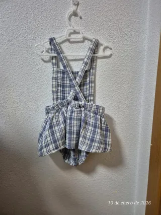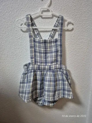 Precioso pichi de la marca DADATI para bebé niña. Talla 36 meses - Diseño de cuadros en tonos azules y blancos. - Tirantes cruzados en la espalda. - Falda con vuelo y bombacho incorporado.