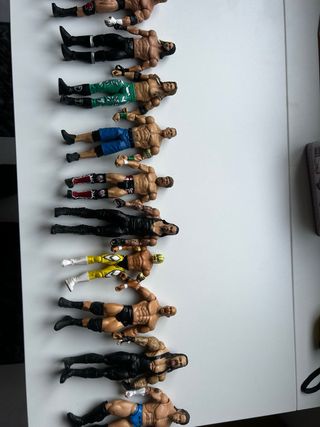 Conjunto de figuras de acción de la WWE. Se venden juntas o por separado. - Figuras detalladas de luchadores. - Ideal para coleccionistas.