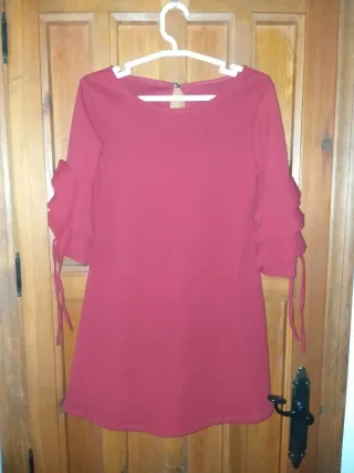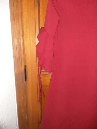 Vestido de chica en color granate con un diseño moderno. - Mangas con volantes y lazos. - Cierre en la espalda con botón. - Corte recto.