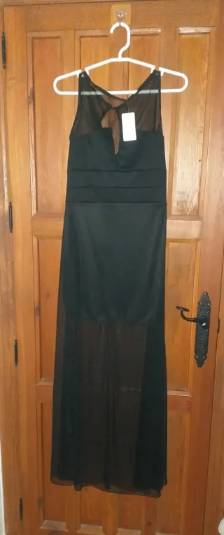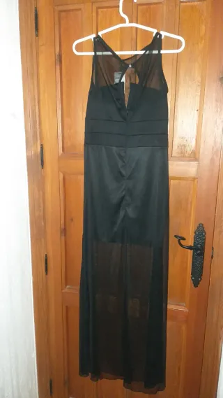 Vestido largo de color negro, ideal para eventos o para lucir elegante. - Diseño largo hasta el suelo. - Tejido ligero y vaporoso.
