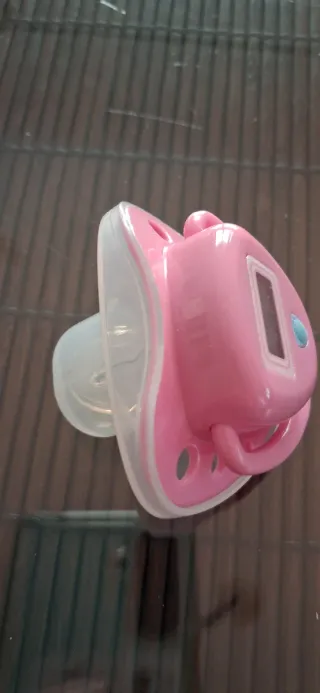 Chupete termómetro de la marca SATO, ideal para recién nacidos. - Diseño cómodo y seguro. - Resistente al agua.