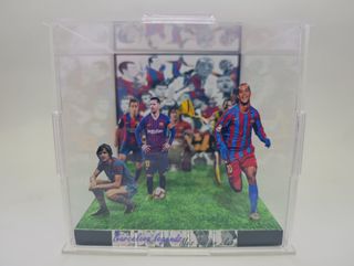 Para los auténticos seguidores del Barça! Vendo un diorama de colección, diseñado meticulosamente en acrílico, que rinde homenaje a los seis pilares de la historia azulgrana. Una pieza compacta y elegante, ideal para estanterías, escritorios o vitrinas de trofeos. Este diorama reúne a los arquitectos del fútbol total y la magia del Camp Nou. Características Principales: Material: Acrílico premium con acabado brillante. Tamaño de la base: 10x10 cm (ideal para espacios de colección). Las 6 Leyendas incluidas: Lionel Messi (El Rey) Johan Cruyff (El Genio) Ronaldinho Gaúcho (La Magia) Andrés Iniesta (El Cerebro) Xavi Hernández (Maestro)