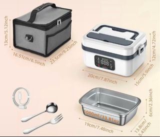Fiambrera eléctrica con una capacidad de 1000ml. - Incluye bolsa de transporte. - Incluye cubiertos (tenedor y cuchara). - Incluye cable de carga.