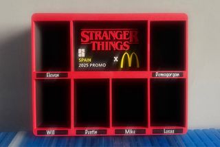 Coleccionable del expositor de Stranger Things de la promoción de McDonald's España 2025. ❌No se incluyen las figuras.❌ 📦SOLO SE ENVIA POR CORREOS📦🚚📩 - Diseño del expositor con el logo de Stranger Things y McDonald's.