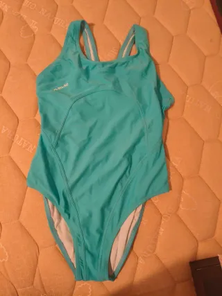Bañador deportivo de la marca Nabaiji en color verde azulado. Para talla S-M - Diseño deportivo. - Tirantes cruzados en la espalda.