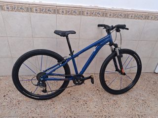 Bicicleta de montaña Rockrider ST 500 en color azul. - Cuadro de aluminio. - Suspensión delantera. - Frenos de disco. - Ruedas de 27.5 pulgadas.