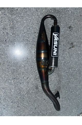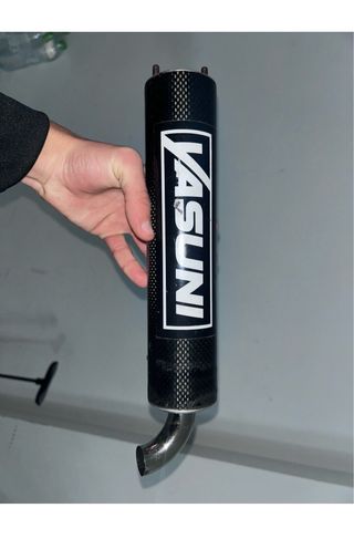 Sistema de escape Yasuni R diseñado para motores Minarelli horizontal para mejorar el rendimiento - No tiene homologación - silenciador carbono Tiene oxido desde la zona del cilindro hasta la bomba, un roce y un boyo por esa zona Doy sistema de atornillado, acopladores y muelle pero JUNTA NO