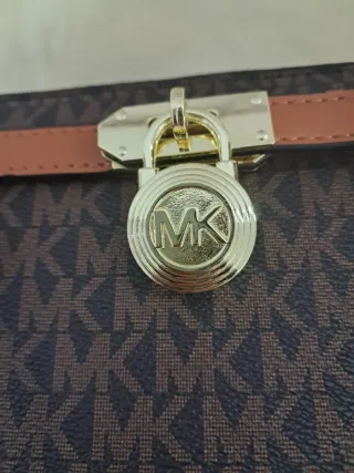 Bolso elegante - Color marrón con detalles dorados. - Cierre de solapa con candado. - Asas superiores. - Incluye bolsa guardapolvo.