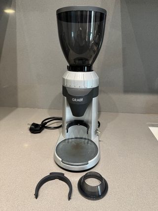 GRAEF CM 800 Molinillo de Café Eléctrico 128W, 350g, Molino Cónico Inox, Aluminio, 40 Niveles, Portafiltro, Antiestático, Plata - Funciona muy bien. - Solo desgaste en alfombrilla