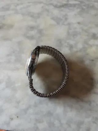 Reloj de pulsera con diseño clásico y detalles en dorado y plateado. - Esfera blanca con subesferas. - Correa de eslabones metálicos.
