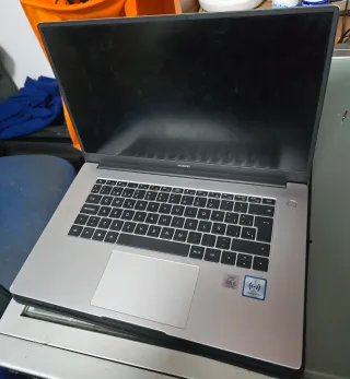 Portátil Huawei con procesador Intel Core i5 de 10ª generación. No tiene disco duro ni cargador - Modelo: BOB-WAH9 - Color: Plateado y negro El portátil no se enciende, lo pongo a cargar y se enciende un Led en blanco solamente Para reparar o para piezas