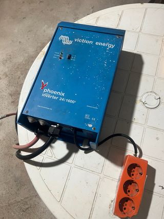 Inversor Victron Energy modelo Phoenix. Hago envios aunque prefiero trato en mano por su peso, si traes una batería lo podemos probar sin compromiso Funciona perfectamente Lo tenia en una casita de campo - Voltaje: 24V - Potencia: 1600W - Tipo: Onda sinusoidal pura En su día costo +700€ No mareantes gracias solo gente seria