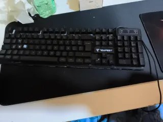 Teclado de ordenador de la marca Tempest en color negro. Ideal para gaming. - Diseño robusto. - Teclas retroiluminadas. -Viene un poco sucio -Funciona perfectamente