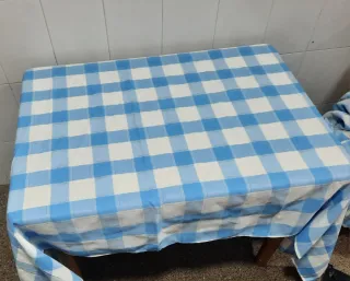 Mantel con un diseño clásico de cuadros en tonos azules y blancos. Ideal para darle un toque fresco a tu mesa. - Diseño a cuadros. - Colores: azul y blanco.