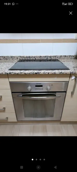 Conjunto de vitrocerámica y horno empotrable para cocina. - Vitrocerámica de inducción. - Horno de acero inoxidable.