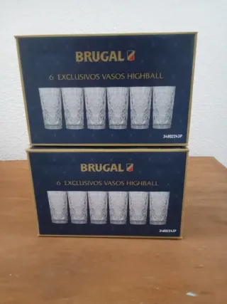12 vasos Brugal grabados, grandes y gruesos, cuando los ves y los cojes trasmiten calidad.