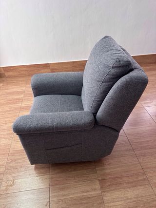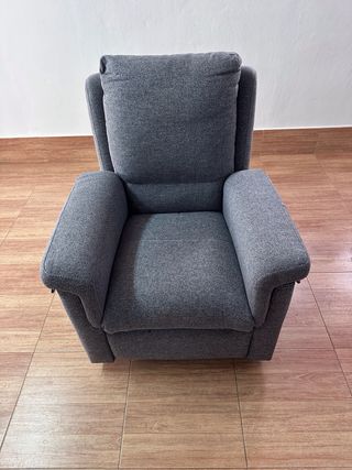 Sillón reclinable tapizado en gris, ideal para descansar, leer o ver la tele. Tiene respaldo abatible y reposapiés extensible, muy cómodo y en perfecto estado. Apenas usado. - Diseño moderno y elegante. - Respaldo alto para mayor confort - incluye revistero y reposabrazos acolchados - Tapizado en tela suave y resistente - Mecanismo de reclinación manual Entrego solo en mano gracias