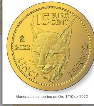 Moneda de oro de 15 Euro Cent conmemorativa del Lince Ibérico. - Año: 2022 - Denominación: 15 Euro Cent - Metal: Oro - Diseño: Lince Ibérico entrega en mano en granada y alrededores