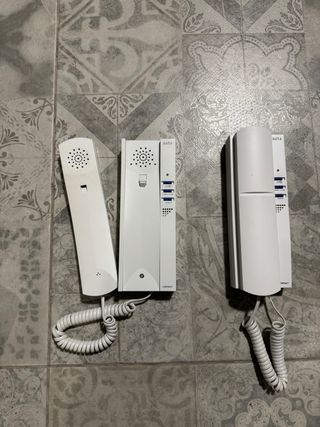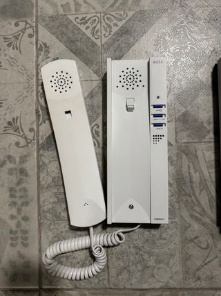 Portero telefonillo con base para instalar en pared. Hay 2 unidades funcionando perfectamente. Tiene opción apertura puerta.