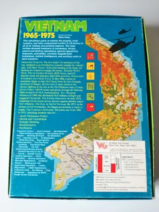 Juego de simulación de la guerra de Vietnam de Victory Games. - Título: Vietnam 1965-1975 - Publicado por Victory Games, Inc. - Año de publicación: 1984 - Impreso en EE. UU. Incluye traducción del reglamento en español, editada por Joc Internacional. El juego está impecable, incluso la caja, a pesar de ser todo un clásico.