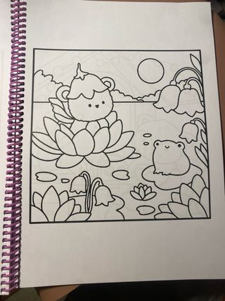 Libro de colorear con temática nocturna y personajes adorables. - Ilustraciones de ositos, ranas y flores. - Diseño de portada Sweet Night Coloring Book.