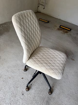 Silla de escritorio con un diseño acolchado y moderno. Su base metálica le da estabilidad. - Tapizado en tela. - Base de metal con ruedas. Necesita limpieza