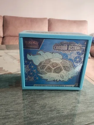 Caja de Entrenador Élite de Pokémon, edición Stellar Crown / Corona Astral. - Diseño en color azul claro. - Ilustración de Pokémon en el frontal. Se vende caja de Pokémon de Corona Astral con el protector azul hecho en 3d incluido en el precio, la caja presenta un pequeño arañazo en el plástico protector, de la ETB pero es pequeño,