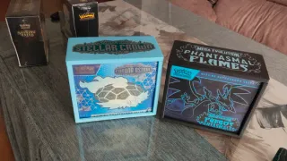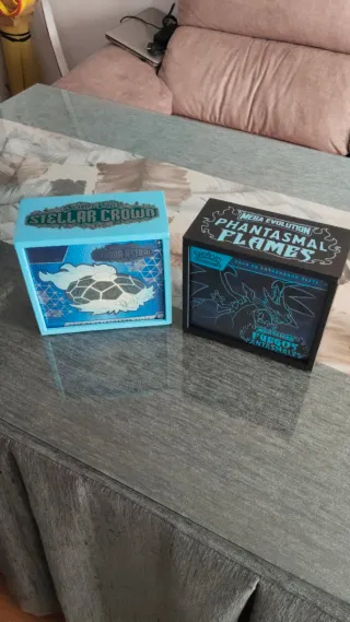Se venden dos cajas de entrenador élite de Pokémon. - Caja Stellar Crown (Scarlet & Violet). - Caja Phantasmal Flames (Mega Evolution). - Ambas cajas vienen con un protector personalizado en 3d incluido en el precio.