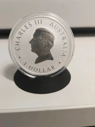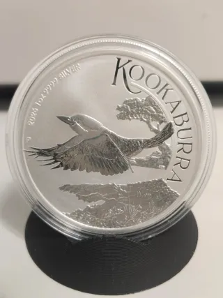 Moneda de plata de inversión con diseño de Kookaburra. - - Metal: Plata - Pureza: 99.99% - Peso: 1 oz