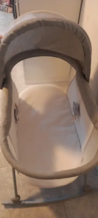 Cuna para bebé con función balancín. - Estructura gris. - Mosquitera incluida.