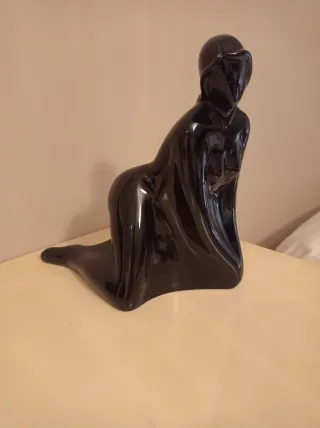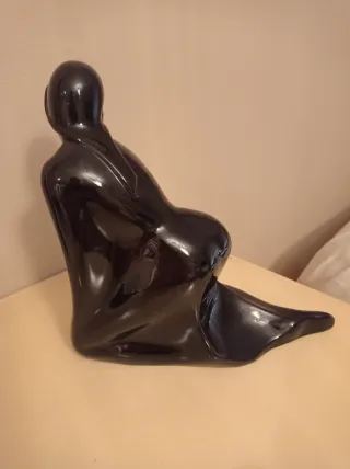Elegante figura decorativa de cerámica. - Diseño abstracto de una mujer. - Acabado brillante en color negro.