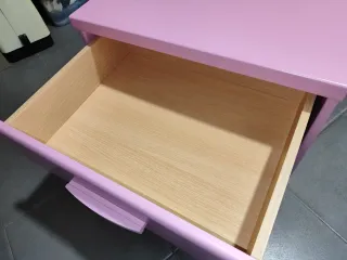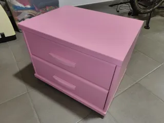 Mesita de noche con dos cajones, ideal para una habitación infantil. - Diseño moderno y funcional. - Acabado liso y fácil de limpiar.